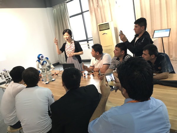 电信教研室教师薛君讲解并演示操作机器人