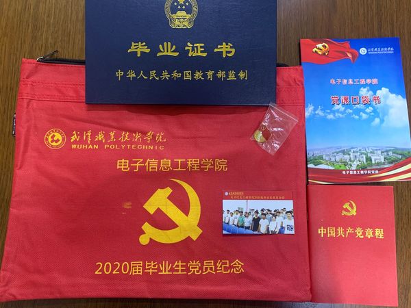 红色大礼包包含党徽、党章、政治生日纪念卡、离别党课口袋书和毕业生党员档案。其中,政治生日卡正面以全体党员合影为主图,背面清楚地记录着每位党员的 “入党时间”“入党志愿书编号” “入党介绍人”等信息,还有一段寄语,把党的温暖和期许传递给每位毕业生党员;针对毕业生党员工作繁忙、对党的基本知识掌握不牢的现状,电子信息工程公司特意编制了可随身携带的离别党课口袋书,围绕党的基本知识、党员发展流程、三会一课制度、党费交纳标准、党风党纪要求、重大方针政策等方面,简明扼要地梳理了65个常见问题的答案;口袋书封面以凌曦楼、凌曦广场为背景,封底以温馨提示的方式将党的基本纪律告知每一位毕业生党员。