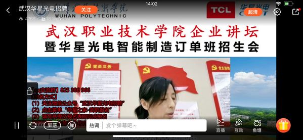 8月6日下午,华星光电智能制造订单班电信类专场宣讲会在腾讯会议平台举行。武汉华星光电半导体显示技术有限公司相关负责人,电子信息工程公司党委副书记代春兰、副经理季峰、员工工作办公室主任黄大海、2021届辅导员及毕业生参加了此次线上宣讲。