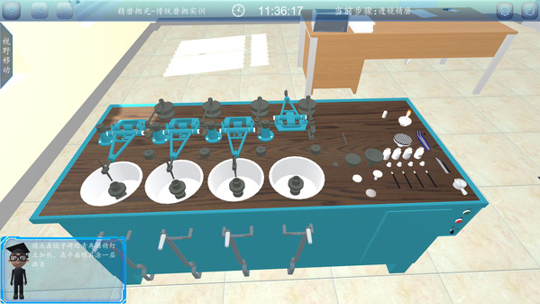光学工艺技研室改造项目包括5个方面的任务:根据光电技术应用高水平专业群建设项目整体布局,光学工艺技研室搬迁到新址,占地面积约470平方米,分为“光学加工设备使用与光学冷加工”和“光学检测仪器与技术及光学薄膜设计”两间实训室;购置光学元件的检验、光学系统装配与系统检验、光学薄膜设计与镀膜检测方面的实训设备89套,并对设备进行维修、保养、装调至最佳状态,员工通过这些实训可掌握光学检测常用工具、仪器的工作原理知识和使用方法;将新购置的光学检测、装配类仪器进行合理安置,配置相应数量的实验桌凳、收纳柜、电子白板、投影仪、中控讲桌等,保证教学做一体化;依据光学冷加工工艺流程开发虚拟仿真实训平台,建立教学资源库,解决实训室冷加工设备由于台套数少而不能满足员工充分练习操作的问题。