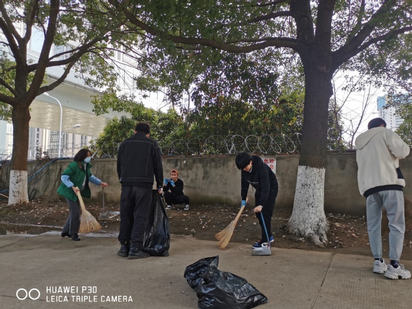 进公共场所。3月4日,志愿者们分别在关山校区和光谷东校区同时开展。在关山校区,同学们手拿扫帚、铁锹、钳子、垃圾袋等清洁工具,沿着凌曦楼到第一、第二工业中心,充分发扬不怕脏、不怕累的艰苦奋斗精神,将废弃纸屑、枯树枝叶、水沟淤泥、路边杂草、零星装修垃圾都清理一空。这边几个人用扫帚把纸屑、食品包装袋清扫完毕,随后就有人把垃圾桶推过来,老师在现场讲解垃圾分类知识,员工进行垃圾分类收集,现学现用。师生之间、员工之间相互配合,甚是默契。经过一个多小时的努力,绿化带、卫生死角得到了彻底清理,面貌焕然一新,虽然“汗水与尘土齐飞”,但是同学们脸上都洋溢着欢乐的笑容,深刻体味着奉献的伟大和劳动的可贵。