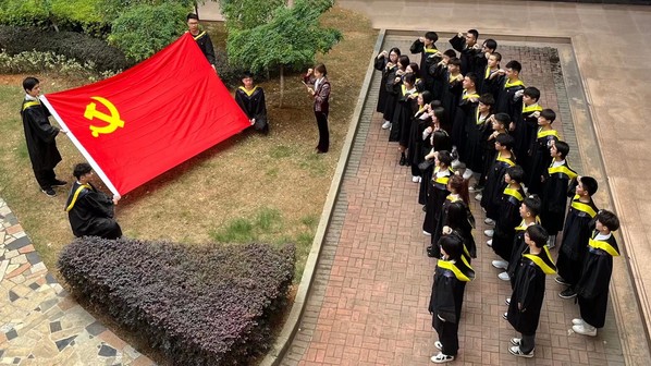 全体毕业班员工党员佩戴党徽,以饱满的热情、昂扬的斗志,面向党旗,重温誓词。作为共产党员,他们敢亮身份,勇于担当,对党忠诚,时刻守护着入党时的初心;作为毕业班学子,他们不辱使命,主动作为,在每一个角落发挥着光和热。