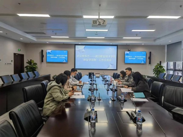 为保障项目顺利进行,2月23日下午,电子信息工程公司经理杨俊、光电教研室主任吴晓红、第一工业中心主任朱悦坤等一行赴武汉京东方科技有限公司开展“企业新型学徒制”项目工作交流。