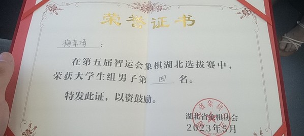 梅荣涛同学以五胜一和一负取得了第四的好成绩,他将代表湖北省参加第五届全国智力运动会。本次比赛取得的名次为公司近五年最好成绩。